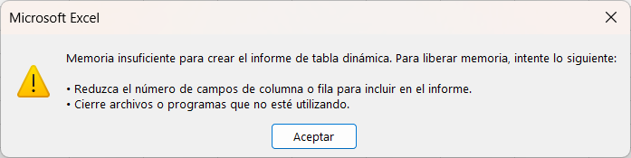 Insufficient memory to create the pivot table report. To free up memory, try the following: